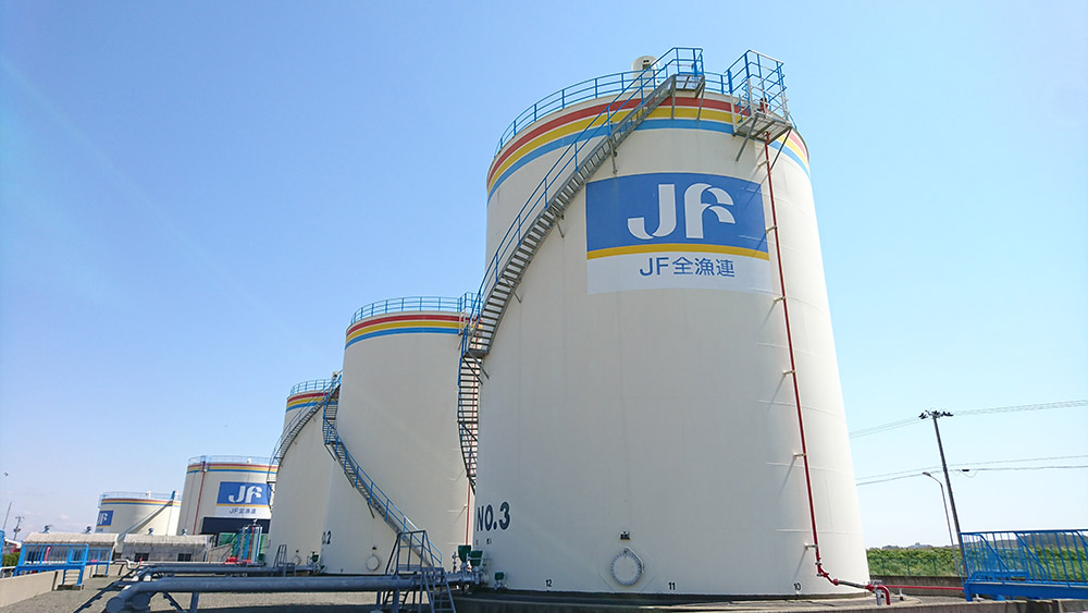 JFグループでは、JFやJF漁連、JF全漁連が所有する燃油供給施設等により、操業に必要な漁業用燃油(漁船を動かすためのA重油など)や資材を安定的に供給しています。漁業用燃油の需要は季節や海の状況、漁模様に左右されます。そのような変動する状況下でも、漁業者が安定的に燃油等を確保できるよう、JF全漁連はJF、JF漁連および取引先と密に連携しています。 さらに、海外で操業する日本漁船に燃油や資材・食料等も供給しています。