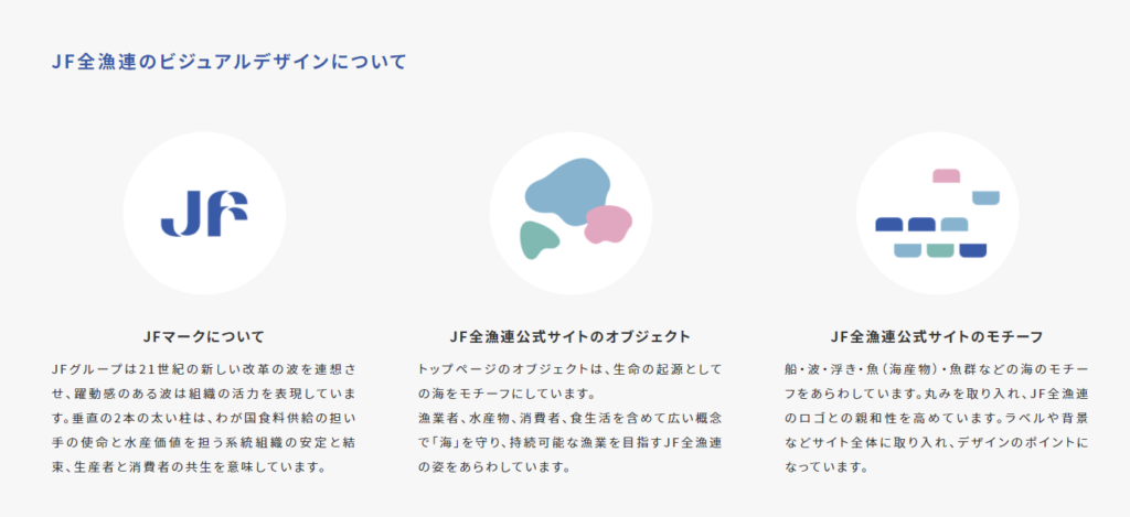 この度のウェブサイト全面リニューアルでは、JF全漁連の事業内容やJFグループの概要について分かりやすく説明するページを追加し、漁業関係者だけでなく消費者もターゲットとしたデザインにしました。