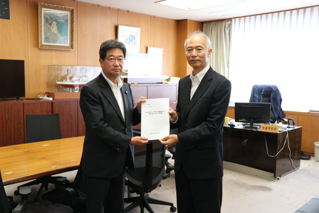 JF全漁連は6月27日、2022年度通常総会で採択された「沿岸漁業における『新たな資源管理』の実践・強化に向けた特別決議」と「ALPS処理水海洋放出の方針に関する政府回答の確実な遵守を求める特別決議」について、金子原二郎農林水産大臣と萩生田光一経済産業大臣に対して要請行動を実施しました。