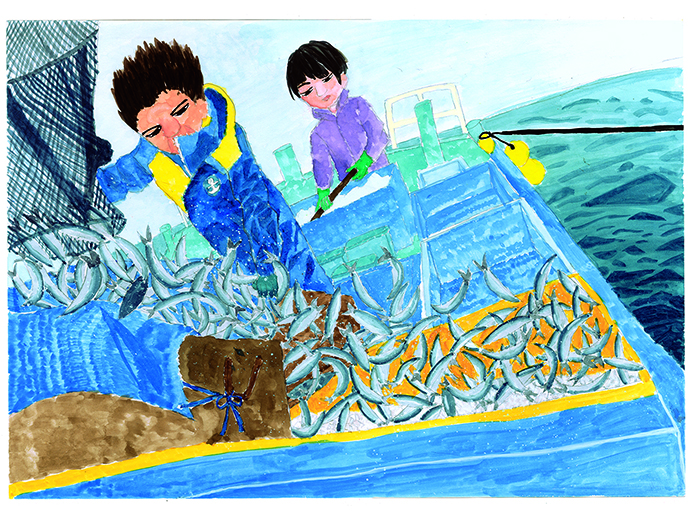 この「全国海の子絵画展」は、小・中学生の皆さんが絵を描くことを通して、海に対する興味や、漁業に対する理解、夢をもって成長して欲しいという願いを込めて、JF全漁連が1978年から開催しているものです。