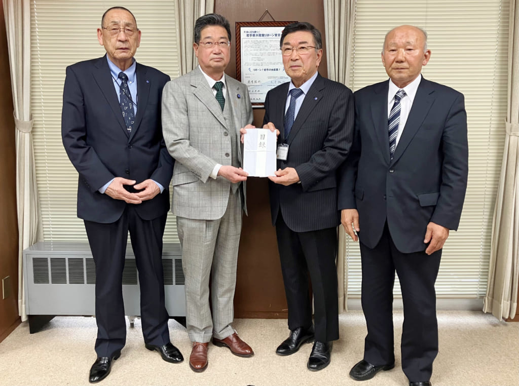 坂本会長はJF岩手漁連の本所事務所を訪れ、出迎えたJF岩手漁連の山崎義広会長、亘理榮好副会長(JF大船渡市組合長)と和田豊太郎JF綾里組合長にお見舞いを申し上げるとともに、今後の復旧・復興に向けて意見交換しました。