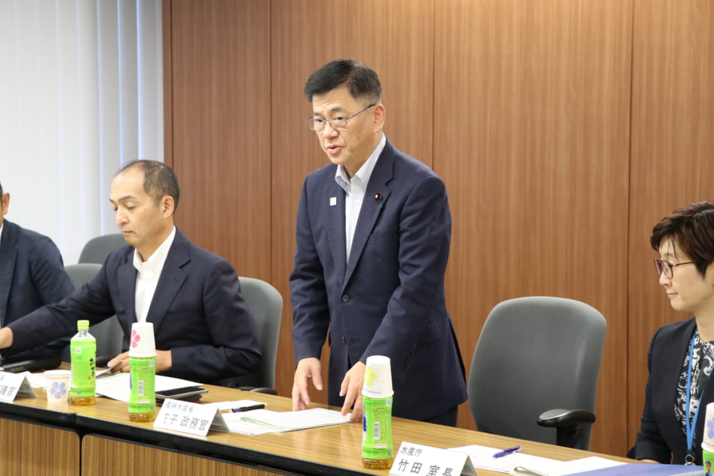 坂本会長からは、米国により15%の関税措置が課されることにより、米国内での需要減退や価格低下の圧力が高まり、日本の水産物輸出に大きなダメージを与えることが強く懸念されていることから、不利益を被る水産関係者に対して、必要な対策をしっかりと講じるよう求めました。