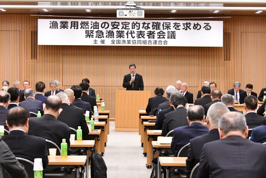 JF全漁連は4月8日、「漁業用燃油の安定的な確保を求める緊急漁業代表者会議」を都道府県会館で開催しました。